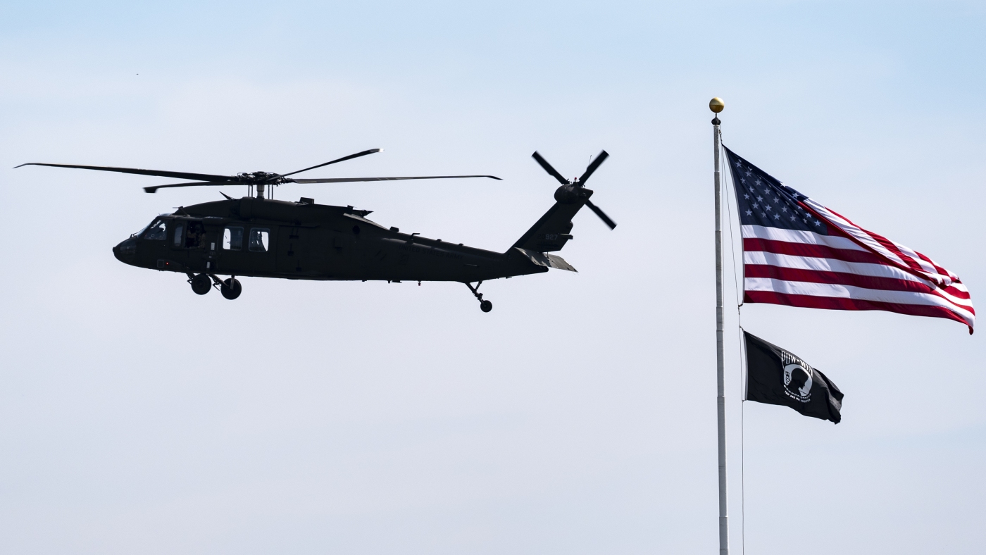 A Black Hawk helicopter approaches for landing at the Pentagon in July 2024.