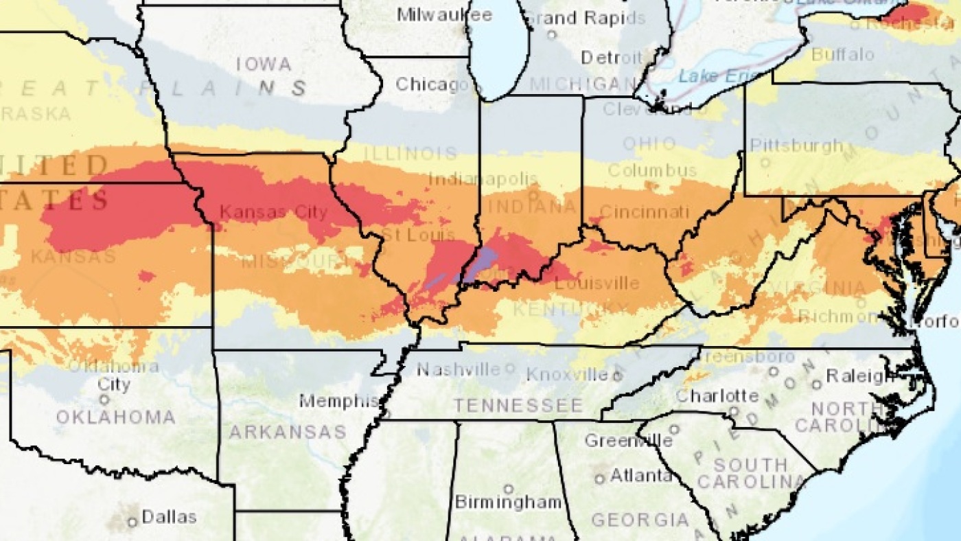 The NWS Weather Prediction Center said that the most extreme conditions will likely be in places running along the Interstate 70 Corridor, which passes through St. Louis and Indianapolis.