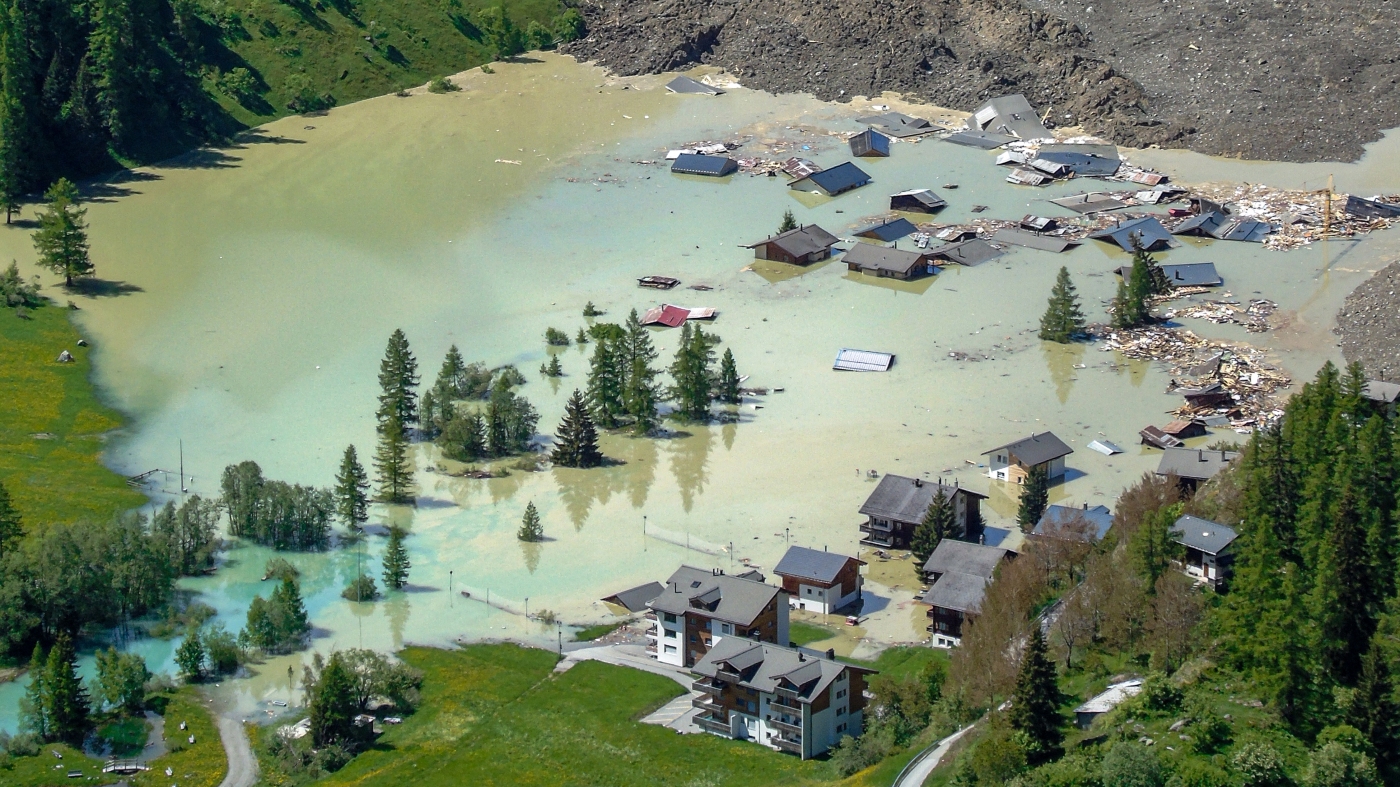 Scientists had predicted a likely disaster and authorities evacuated the entire village of 300 people in the Valais region, south of Switzerland’s capital Bern, on May 19. Sheep and even grazing cows were airlifted by helicopter.
