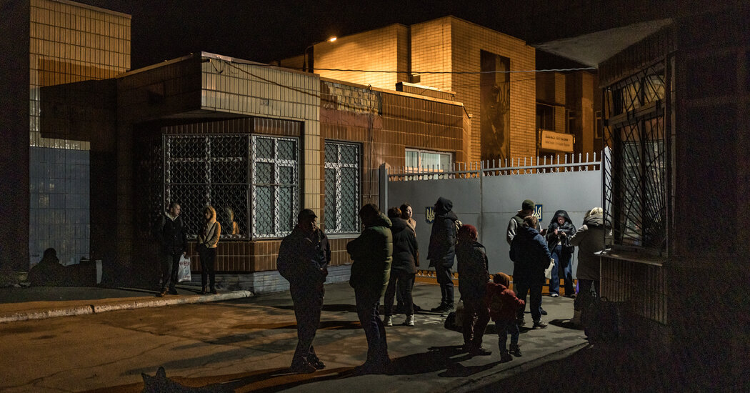 “What reaction can a mother have?” she said. She threw his West Blue cigarettes, along with some potatoes and eggs, into a white plastic bag, then rushed with Maksym to the gathering point, where they stood waiting anxiously with other families in the dark.