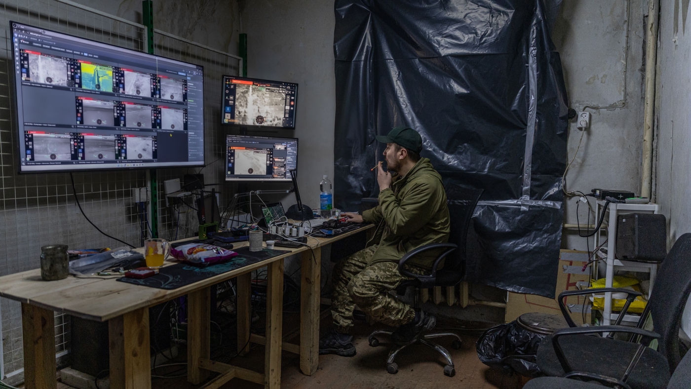 “I watch 16 to 18 broadcasts [transmitted] from our friendly drone pilots,” says the team’s duty officer, a bearded 37-year-old man who goes by the call-sign Pip. It’s his job to help pilots target Russian units more quickly and efficiently.