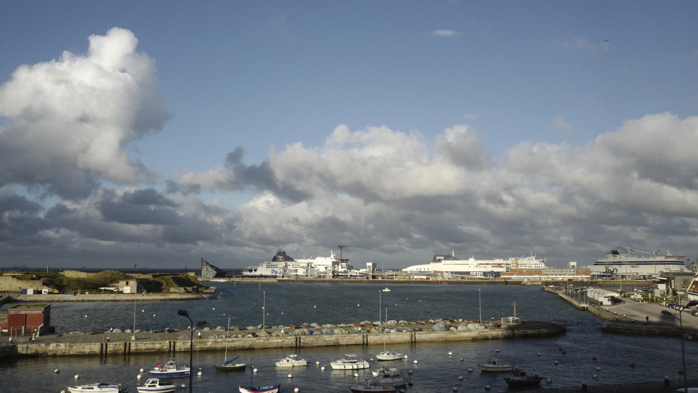 Ferries, background, dock in the port of Calais, northern France, in November 2021. At least 76 people have died crossing the English Channel in 2024, making it the deadliest year on record for small boat crossings.