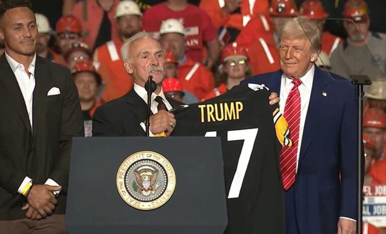 NEWYou can now listen to Fox News articles! President Donald Trump Players of Pittsburgh Steeler joined the stage on the stage during their speech at the American Steel Factory in West Mifflin, Pennsylvania. Steelers striker Mason RudolphSecurity Miles Killebrew and…
