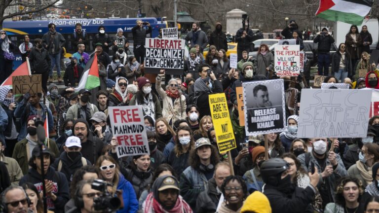 A rally for pro-Palestinian activist Mahmoud Khalil in New York in March. He’s been detained in an immigration detention center in Louisiana as the government tries to deport him. Mostafa Bassim/Anadolu via Getty Images hide caption toggle caption Mostafa Bassim/Anadolu…