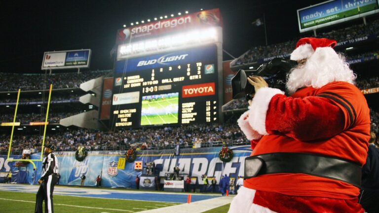 A television camera operator is dressed as Santa Claus during the Baltimore Ravens and San Diego Chargers game on Dec. 18, 2011, at Qualcomm Stadium in San Diego. Donald Miralle/Getty Images hide caption toggle caption Donald Miralle/Getty Images Netflix is…
