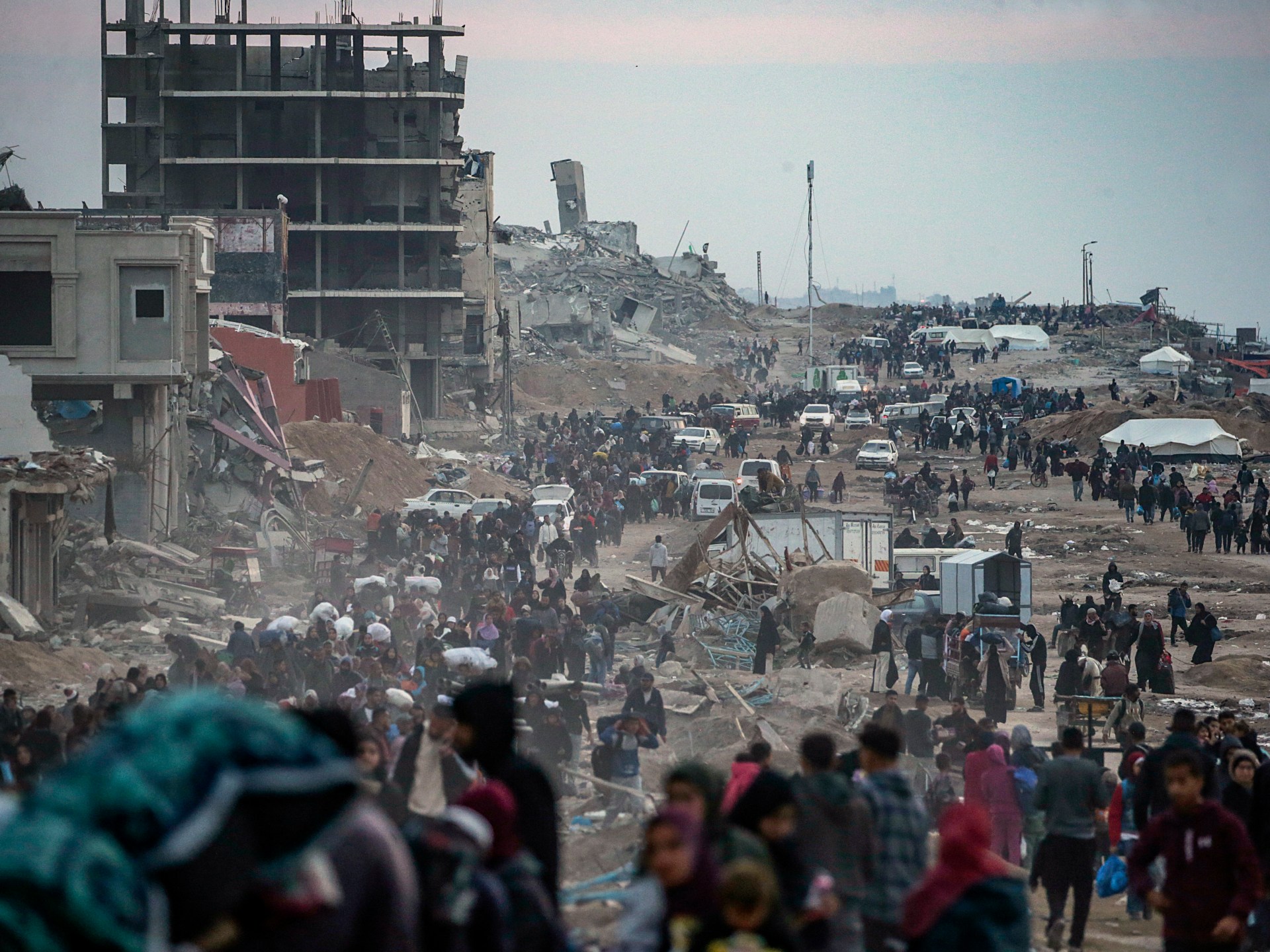 Israel allowed hundreds of thousands or Displaced Palestinians to Start Returning To their homes in the north this week. Although the crowds had Thinned somewhat by tuesday, thousands of men, women and children were still on their way, fully aware they had little waiting for them but rubble.