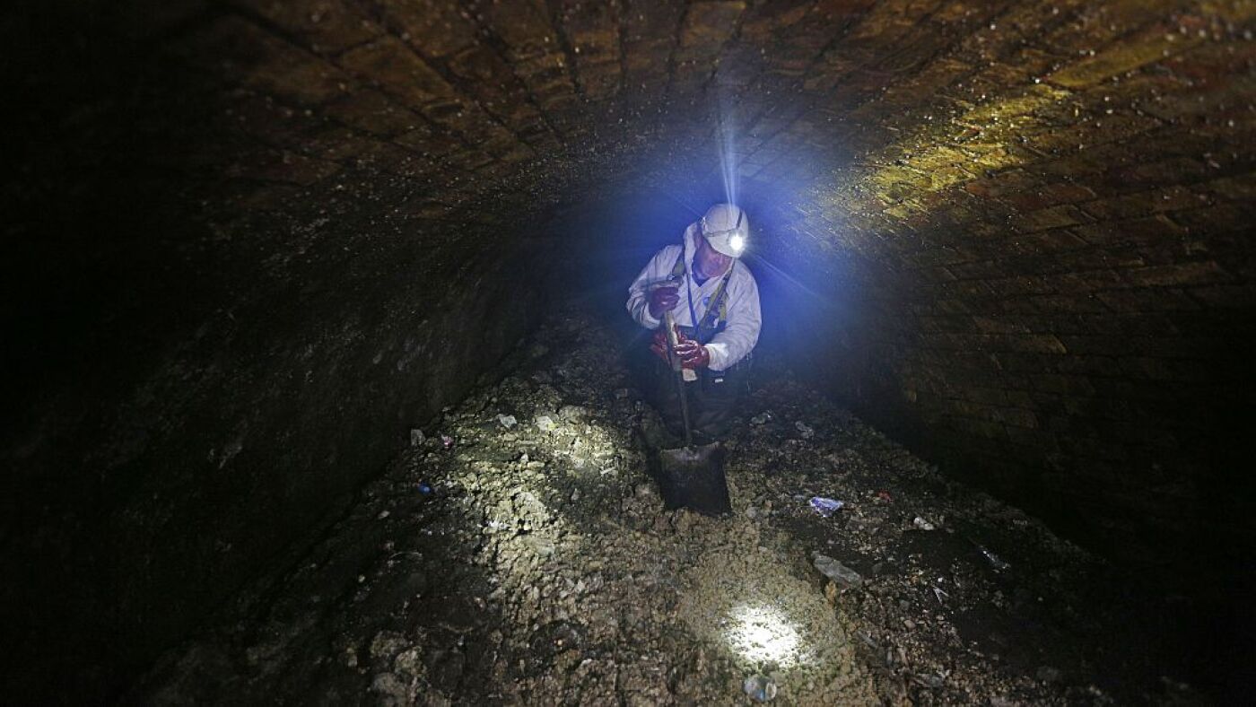 A London city worker clears up a fatberg in 2014. A fatberg in Australia caused the cancellation of a concert over the potential for wastewater overflow.