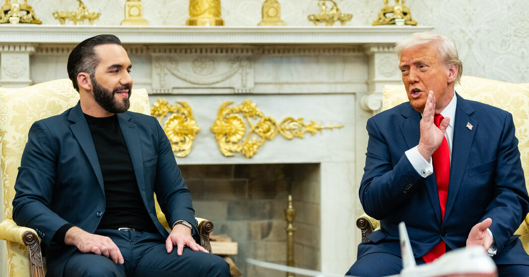 “How can I smuggle a terrorist into the United States? I don’t have the power,” Mr. Bukele said, sitting in the Oval Office beside a beaming President Trump.