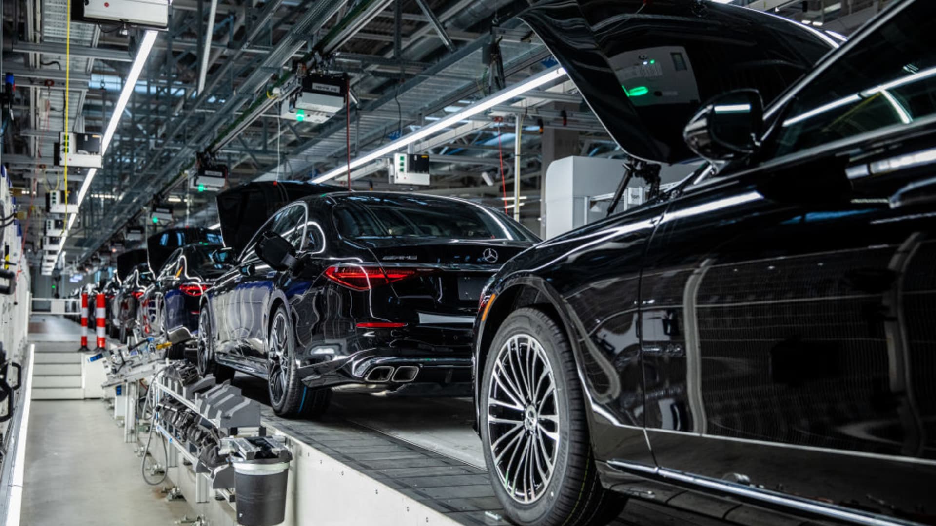 Several Mercedes-Benz vehicles are assembled in the production hall “Factory 56”.