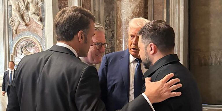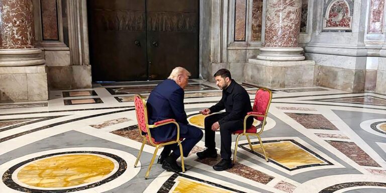 Ukraine Zelensky (R) president met with French president Emmanuel Macron (2nd L) in the Vatican sophony, April 26, 2025 in Vatican City, Vatican. Ukrainian Press Press Service-Formed Images Source link
