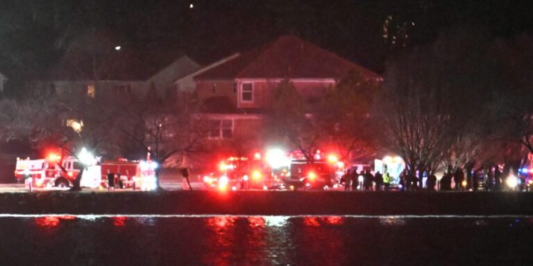 The lights from emergency vehicles were seen crews in the river of Potomac near the Reagan National Airport at Washington’s craphed on January 29, 2025. A passenger crash on January 29, 2025. A passenger crash on January 29, 2025. A…