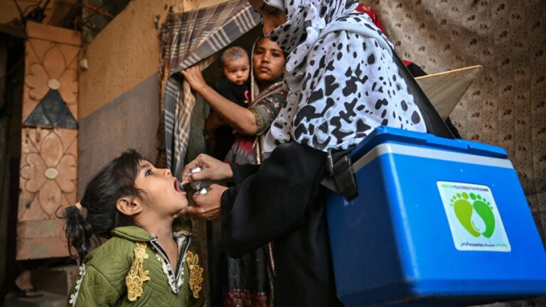 A health worker in Karachi administers polio drops — the oral vaccine — on February 3, the first day of a nationwide polio vaccination campaign. The country, one of only two where wild polio circulates, has seen a rise in…