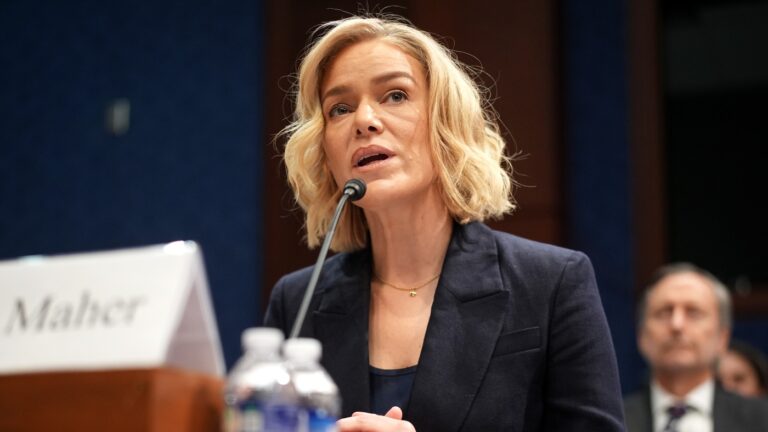 NPR President and CEO Katherine Maher testifies during a House Oversight and Government Reform Committee hearing at the U.S. Capitol on March 26, 2025. NPR and several member stations are suing the Trump administration over an executive order directing the…