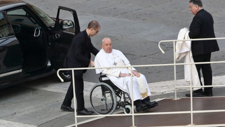 Pope Francis arrives for the Holy Mass in Saint Peter’s Square in Vatican City on Feb. 9. Mondadori Portfolio/Getty Images hide caption toggle caption Mondadori Portfolio/Getty Images Pope Francis needs additional hospital care this week after being admitted for bronchitis,…