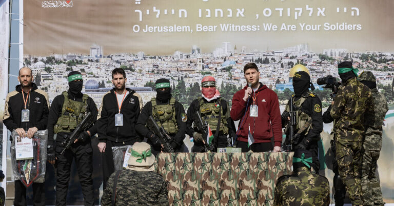 Hamas freed three more Israeli hostages on Saturday in a ceremony marked by some of the same provocative theatrics used by the Palestinian militants in previous releases. It was the sixth round of a tense series of hostage-for-prisoner exchanges that…