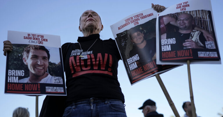 Israeli hostages Iair Horn, Sagui Dekel-Chen and Sasha Troufanov arrived at a release site in Gaza on Saturday after Egyptian and Qatari mediators helped avert a standoff that threatened to sink a fragile ceasefire. The three were led onto a stage with…