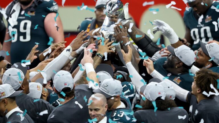 The Philadelphia Eagles celebrate with the Vince Lombardi Trophy after beating the Kansas City Chiefs 40-22 to win Super Bowl LIX at Caesars Superdome in New Orleans. Chris Graythen/Getty Images hide caption toggle caption Chris Graythen/Getty Images The Philadelphia Eagles…