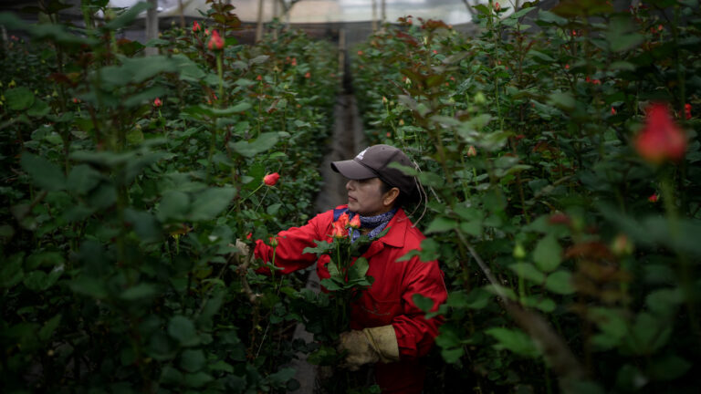 Giving a bouquet of flowers to your beloved is a classic Valentine’s Day gesture of love. But as we hear from our correspondent in Colombia, growing those flowers comes at a steep environmental cost. A worker picks roses at a…