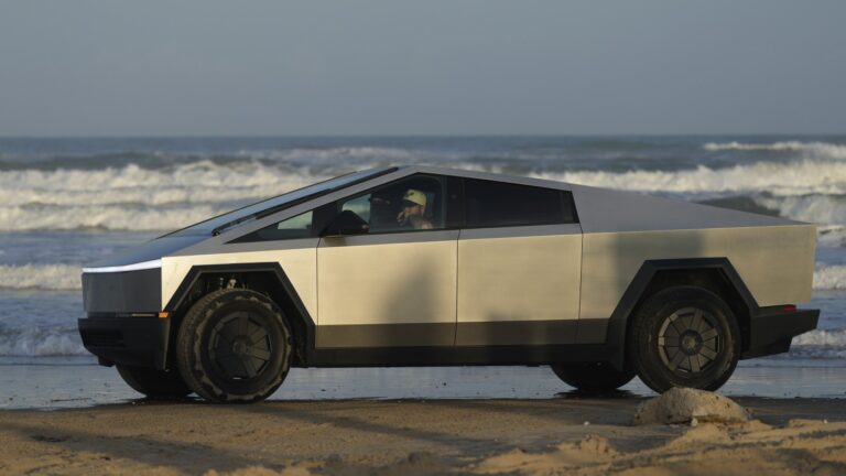 A Tesla Cybertruck moves along the beach in Boca Chica, Texas, Monday, Nov. 18, 2024. (AP Photo/Eric Gay) Eric Gay/AP hide caption toggle caption Eric Gay/AP The Trump administration is expected to purchase $400 million worth of armored Tesla vehicles,…