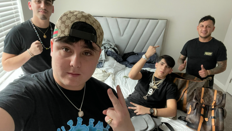 The FBI says this photograph, taken the day after NFL quarterback Joe Burrow’s house was burglarized, shows several suspects in the crime with items that were reported stolen, including Burrow’s jewelry bearing his jersey number, 9. The agency believes the…