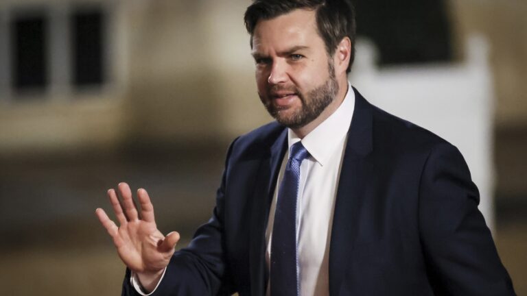 United States Vice-President JD Vance arrives for a dinner at the Elysee Palace, during an event on the sidelines of the Artificial Intelligence Action Summit in Paris on Monday. Thomas Padilla/AP hide caption toggle caption Thomas Padilla/AP U.S. Vice President…