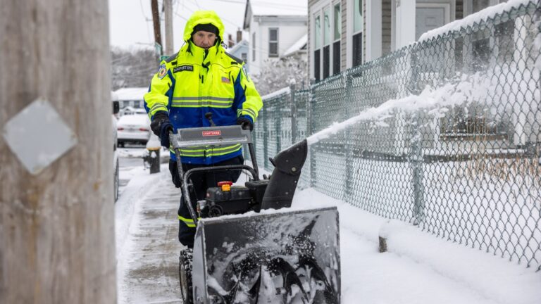 A man uses a snow blower to clear snow in Boston on Sunday. Scott Eisen/Getty Images hide caption toggle caption Scott Eisen/Getty Images A mix of snow and ice blanketed a large swath of the northern U.S. on Sunday, after…