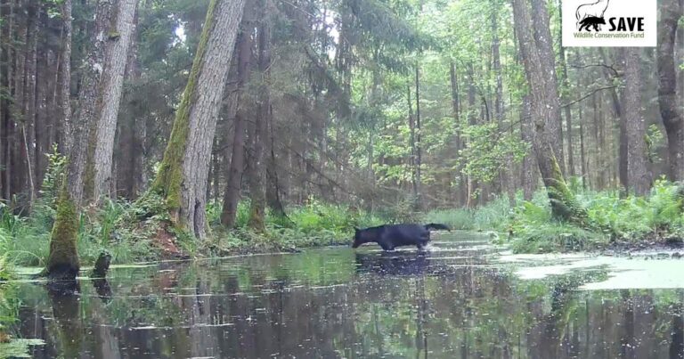 Two rare black wolveslikely siblings, were spotted on camera crossing a stream in a Polish foresta conservation organization said Sunday. The unusual sighting, captured last year on a video camera set up by SAVE Wildlife Conservation Fund Poland project coordinator…