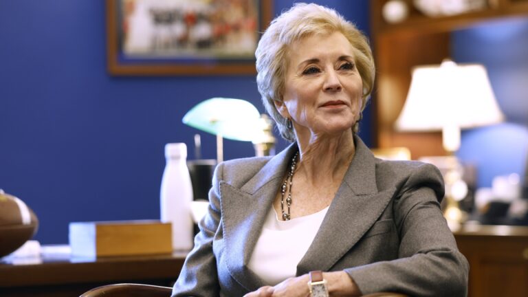 Donald Trump’s nominee to lead the U.S. Education Department, Linda McMahon, seen here in December, has come out in support of school choice and “parental rights in education,” and in opposition to “political indoctrination in classrooms.” Anna Moneymaker/Getty Images hide…