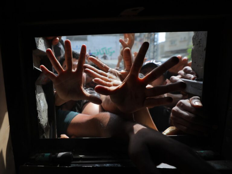 Desperately hungry palestinians scrambled to try and get their share of gaza’s first freshly baked bread in weeks. Source link