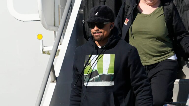 Philadelphia Eagles striker Jalen Hurts turned on Monday, while he and the rest of the team arrived in New Orleans Super Bowl Lix against the Kansas city bosses. The disease wore Black ducker with a photo of Cleat who caught…