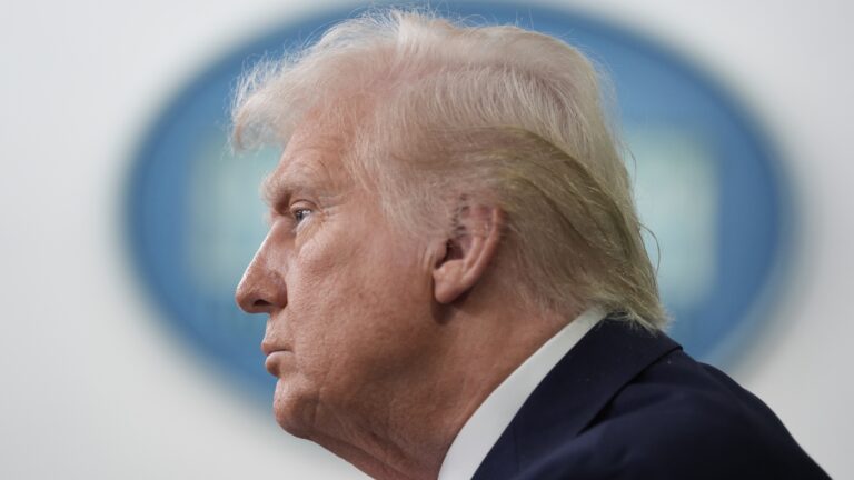 President Trump speaks to the press from the Brady Press Briefing Room at the White House on Jan. 30. On Tuesday, the president plans to sign on executive order pulling the U.S. out of the United Nations Human Rights Council.…