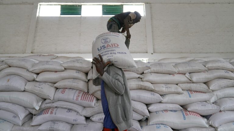 Workers move bags of yellow lentils at an aid operation run by USAID, Catholic Relief Services and the Relief Society of Tigray in Mekele, Ethiopia, on June 16, 2021. Jemal Countess/Getty Images hide caption toggle caption Jemal Countess/Getty Images The…