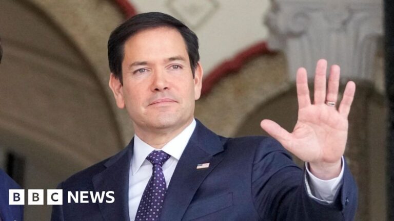 Panama’s Foreign Minister Javier Martinez-Acha (R) shakes hands with U.S. Secretary of State Marco Rubio while leaving a meeting at the presidential palace in Panama City, Panama, on Sunday. Mark Schiefelbein/Pool/AFP via Getty Images hide caption toggle caption Mark Schiefelbein/Pool/AFP…