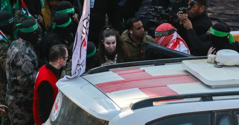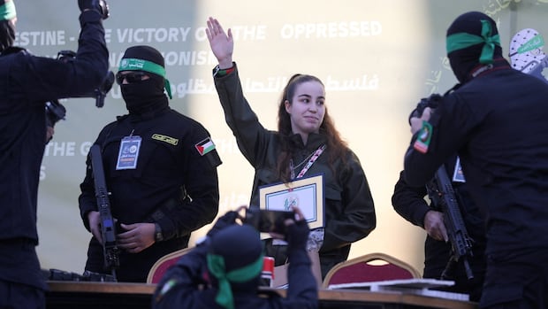 Palestinian militants began handing over three Israeli hostages in Gaza on Thursday in return for 110 Palestinian prisoners to be freed in the latest stage of a ceasefire deal. A female Israeli soldier, Agam Berger, waved at the crowd from a podium…