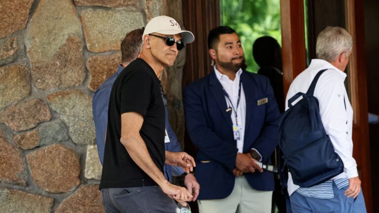 Satya Nadella, Microsoft CEO, reaches for a carrelous careth ea. Sun Conference on the Sun Valort in Sun Valley, Idaho, DRUG Briendan McDermid | Reuders Microsoft Sudden share at the 5% in the existing trade trade after the software company…
