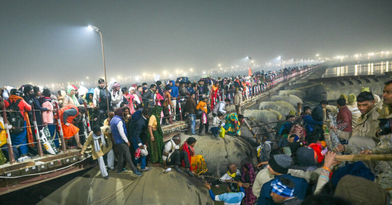 A stampede injured dozens of people early Wednesday as tens of thousands of Hindus rushed to take a holy bath in the river at the massive Maha Kumbh festival in northern India, local media reported. Distressed families lined up outside…