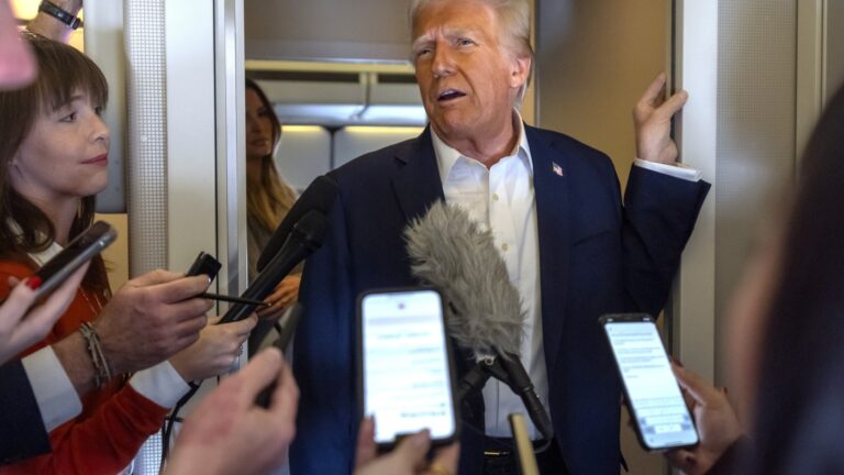President Donald Trump speaks to reporters aboard Air Force One as he travels from Las Vegas to Miami, on Saturday. Mark Schiefelbein/AP hide caption toggle caption Mark Schiefelbein/AP ABOARD AIR FORCE ONE — President Donald Trump said Saturday he’d like…
