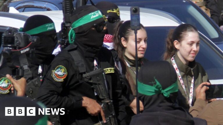 Video from Gaza City shows four Israeli prisoners being handed over by Hamas militants in a dramatic ceremony, and transferred to waiting Red Cross vehicles. Soldiers Karina Ariev, Daniella Gilboa, Naama Levy – all three 20 years old – and…