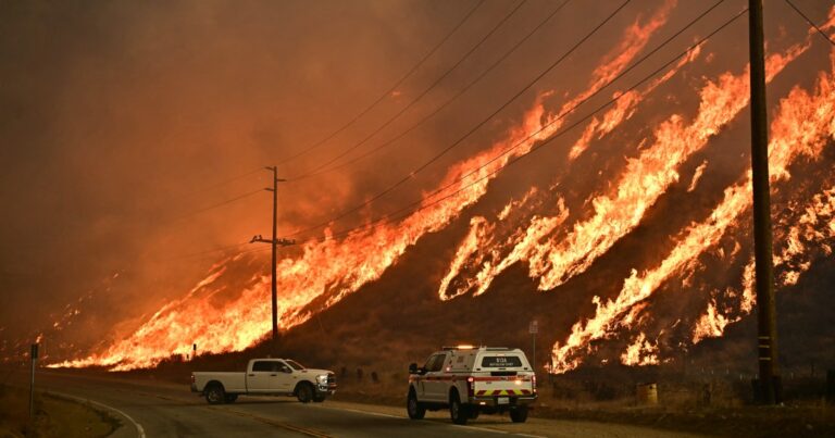 Firefighting aircraft and ground crews are battling fast-moving wildfire in the Castaic Lake area north of Los Angeles. A fast-moving wildfire broke out in the mountains north of Los Angeles and ripped through an estimated 21 square kilometers (8.1 square…