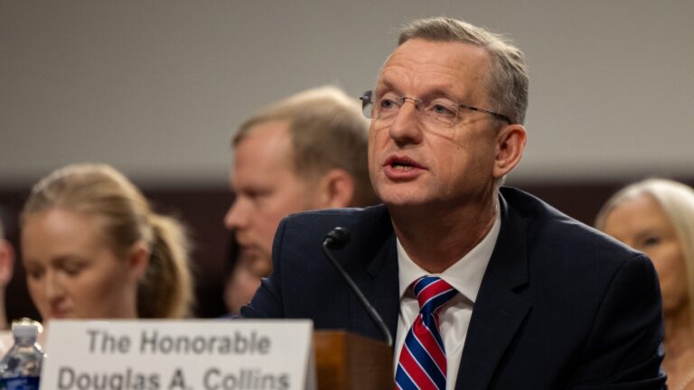 Former Rep. Doug Collins, nominee for secretary of Veterans Affairs, speaks at his confirmation hearing in front of the Senate’s Veterans Affairs Committee on Jan. 21. Nathan Posner/Anadolu via Getty Images hide caption toggle caption Nathan Posner/Anadolu via Getty Images…