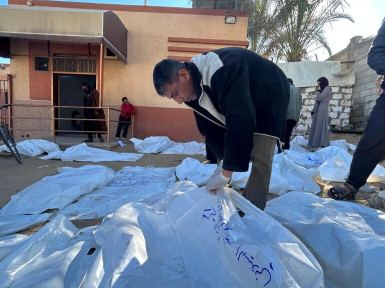 Khan Younis, Gaza Strip, Palestine – With a heavy heart, keen eyes and trembling hands, Abu Muhammed Ghaith meticulously searched through the thick nylon bags used as makeshift shrouds for those killed in Gaza. Inside the morgue at Nasser Hospital…