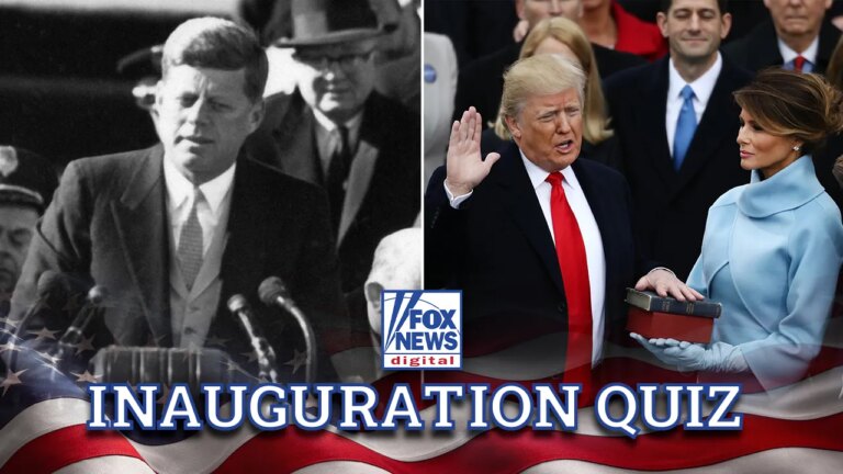 John F. Kennedy concluded the famous sentence from his Inauguration Day turn to what words? And in 2017, First Lady Melania Trump turned heads with her sky blue dress and matching gloves by which designer? As Donald Trump is being…