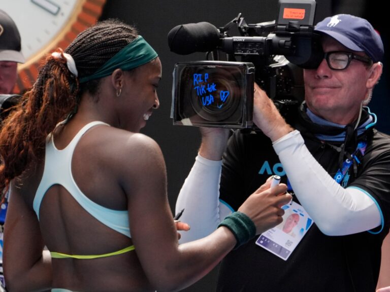 The world number two wrote ‘RIP TikTok’ on a camera after the match in reference to the app’s discontinuation in the US. Coco Gauff wrote “RIP TikTok USA” and drew a broken heart on a camera lens shortly after reaching…