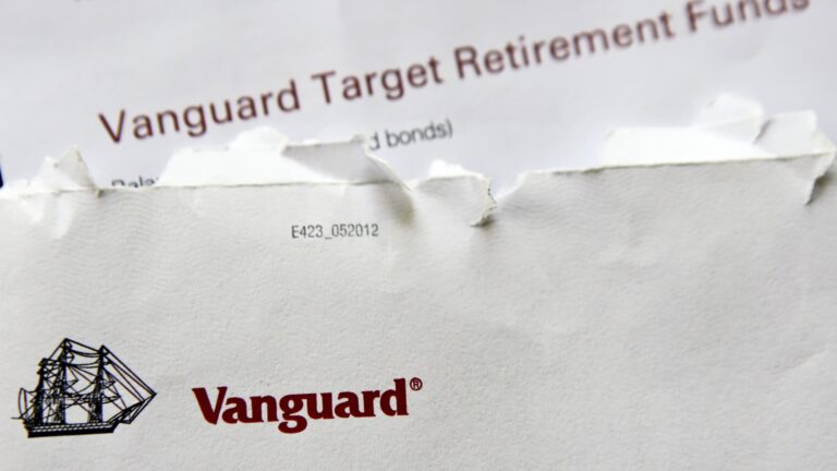 The logo for the Vanguard Group is shown on the correspondence in Zelienople, Pa. Keith Srakocic | AP Asset management giant Vanguard has been fined more than $100 million to resolve charges in relation to disclosures around target date investment…