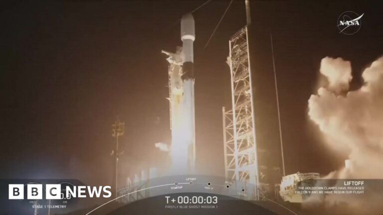 A SpaceX Falcon 9 rocket lifts off with a payload of a pair of lunar landers at the Kennedy Space Center in Cape Canaveral, Fla., Wednesday, Jan. 15, 2025. John Raoux/AP hide caption toggle caption John Raoux/AP CAPE CANAVERAL, Fla.…