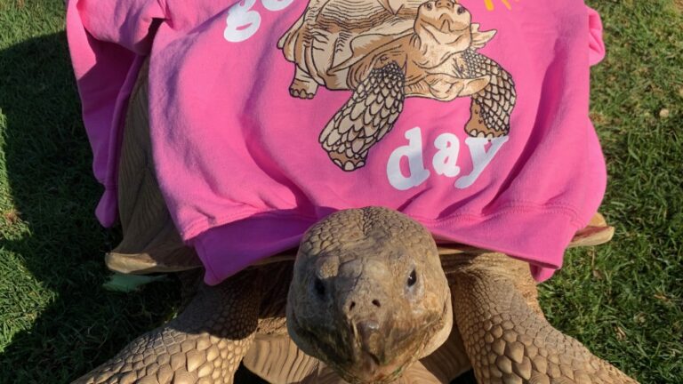 Tiptoe the tortoise is seen wearing a sweatshirt on his back. Caitlin Doran hide caption toggle caption Caitlin Doran This is a developing story. For the latest local updates head to LAist.com and sign up for breaking news alerts. Dark…