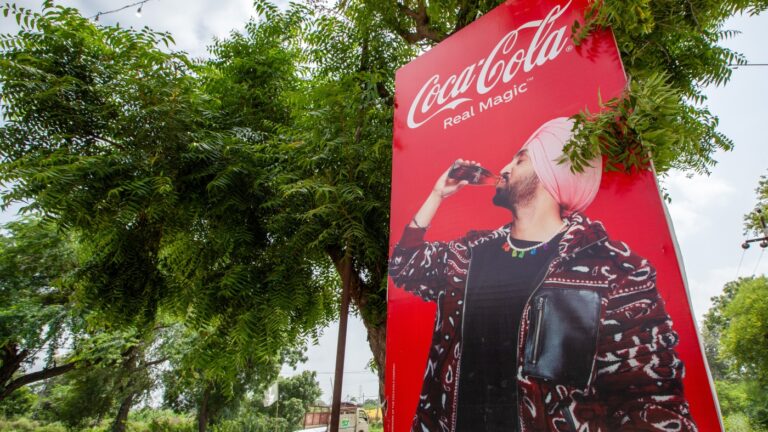 An advertisement of a soft drink brand featuring a local music star in Mansa district, Punjab, India, on Tuesday, Aug. 8, 2023. Anindito Mukherjee/Bloomberg via Getty Images hide caption toggle caption Anindito Mukherjee/Bloomberg via Getty Images Soda was a rare…