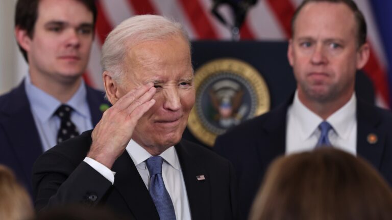 President Biden salutes after delivering a speech about his foreign policy achievements at the State Department on Jan. 13, 2025. Chip Somodevilla/Getty Images hide caption toggle caption Chip Somodevilla/Getty Images After President Biden rhymed off a long list of foreign…