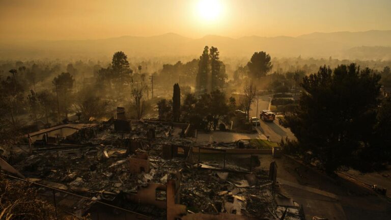 An emergency vehicle drives through a neighborhood devastated by the Eaton Fire, in Altadena, Calif. on Thursday. John Locher/AP hide caption toggle caption John Locher/AP This is a developing story. For the latest local updates head to LAist.com and sign…