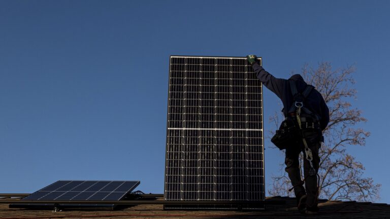 A contractor installs a solar panel on the roof of a home. Uncertainty over the future of a 30% federal tax credit has some homeowners rushing to get panels hooked to the grid before Trump becomes President. David Paul Morris/Bloomberg…